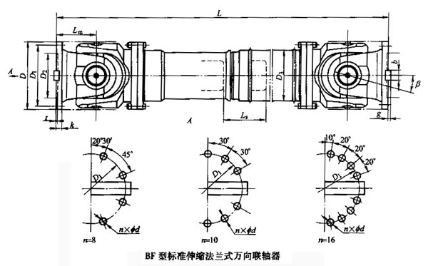 SWC-BF型標(biāo)準(zhǔn)伸縮法蘭式萬向聯(lián)軸器特點及應(yīng)用場合:聯(lián)接兩個不同軸線的軸系傳動,不能緩沖、減振,采用整體叉頭結(jié)構(gòu),軸承固定不用螺栓,避免了螺栓松動斷裂,便于維修,延長使用壽命,可靠性高,承載能力大、傾角大,可在β≤5°~25°工況下工作。適用于軋鋼機械、起重運輸、工程機械、石油機械及其他重型機