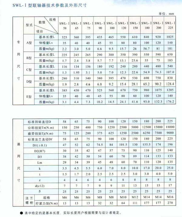 SWL-II重型十字萬向聯(lián)軸器 回轉(zhuǎn)直徑:160~620mm,公稱扭矩:18~1120KN.m,疲勞扭矩:9~560KN.m