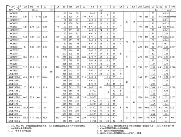 JXC SWF系列萬向聯(lián)軸器(起重機多用):回轉(zhuǎn)直徑:225-620mm,公稱扭矩:50-1120KN.M,疲勞扭矩:25-560KN.m